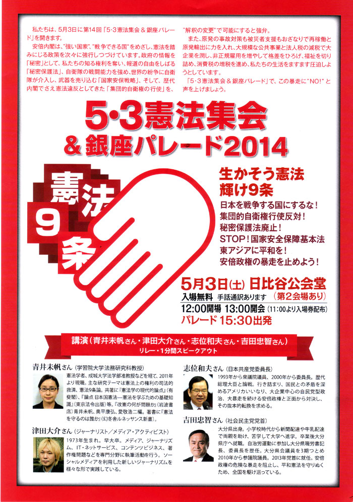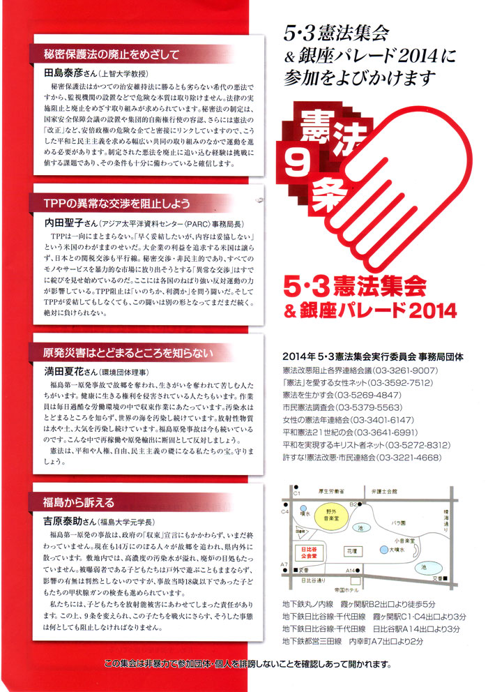 生かそう憲法 輝け9条 あらゆる憲法改悪を許さず いまこそ平和といのちを尊重する社会へ 5・3憲法集会 &銀座パレード2013