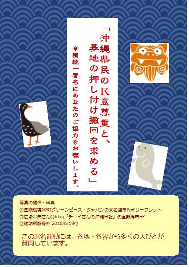沖縄県民の民意尊重と、基地の押し付け撤回を求める全国統一署名