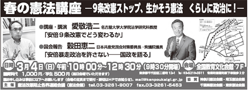 「春の憲法講座」のご案内 18年3月4日 教育文化会館